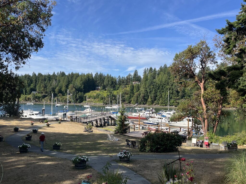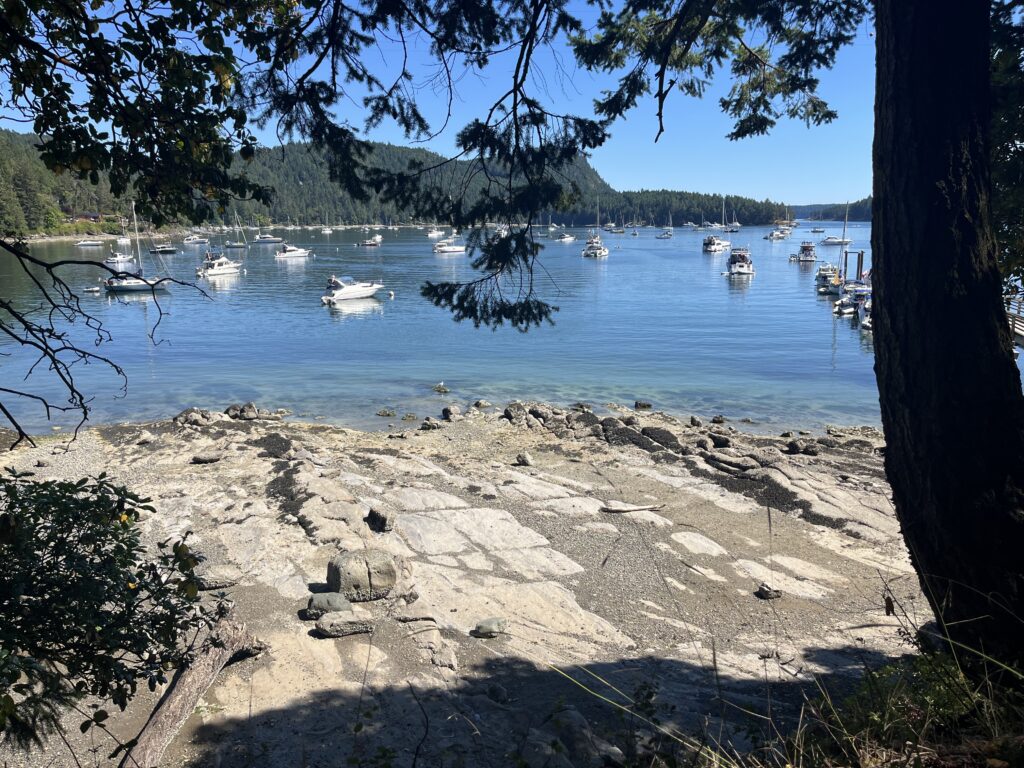Carrying on over the northwestern tip of Salt Spring Island, the course was set to sail to Wallace Island Marine Park. An amazing little pocket where many boats can anchor with their sterns tied to installed rings in the rocks on the outer rock boundary of Princess Cove. The water clear blue while tiny crabs side step in the shallows. There are great hiking trails along the shoreline and back deep into the rain forest bringing one into another much sheltered bay with many boats anchored and a brand new dock. Getting ashore exploring the forest and spying the water from different angles was energizing and a great way to stretch the legs.