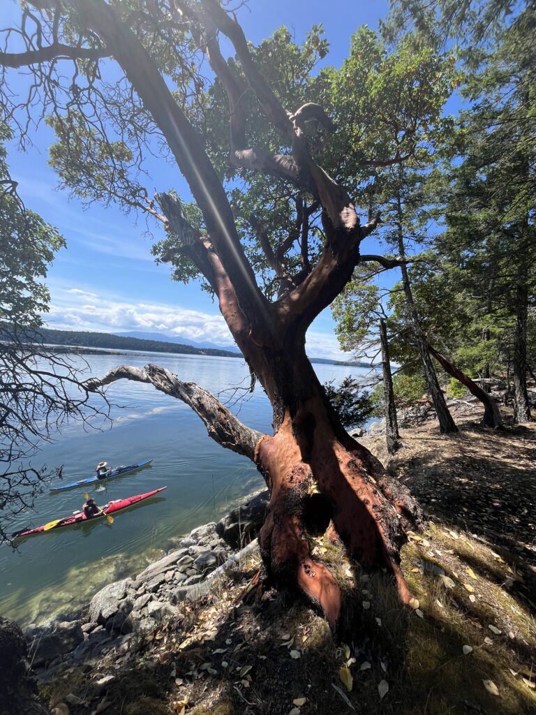 Jesse happy to be on land again, exploring the campsite at Montague Harbour…