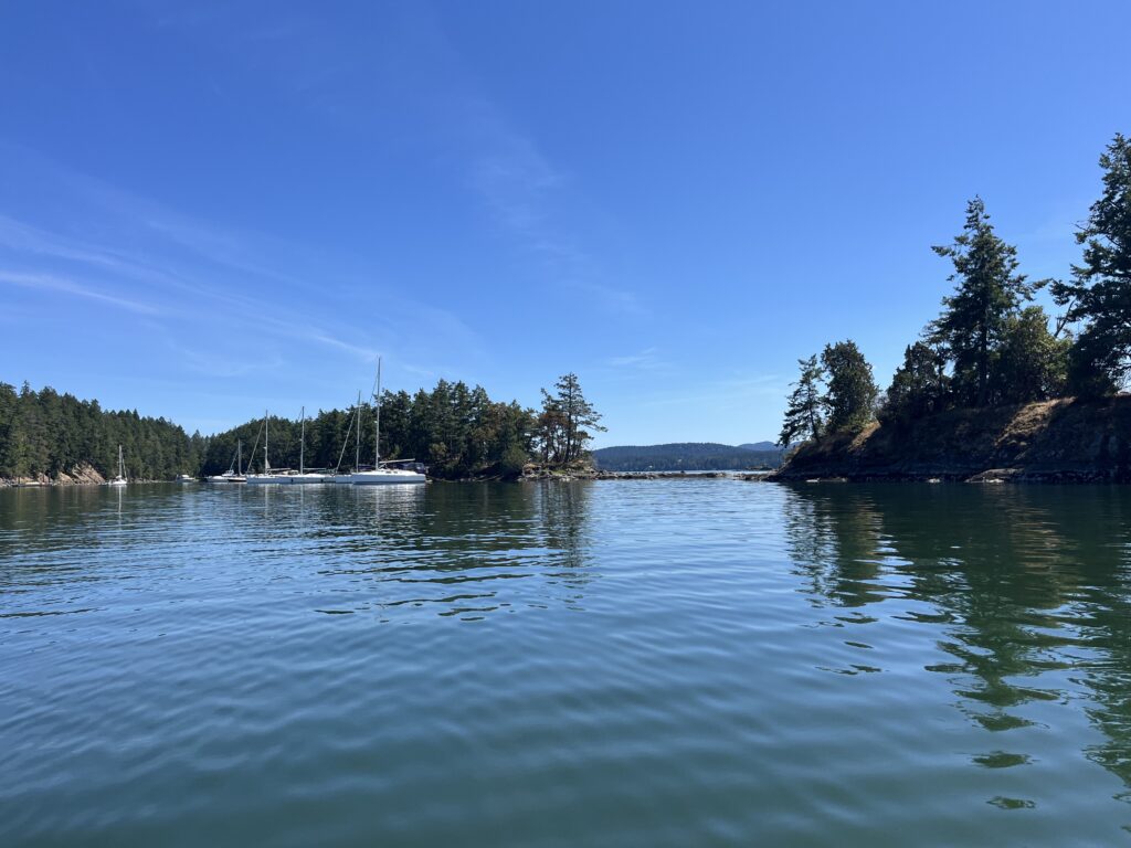 After coming through the narrows, and thankfully uneventful, passing Maple Bay on the left where N&J purchased Spirit Bear in November of 2023.