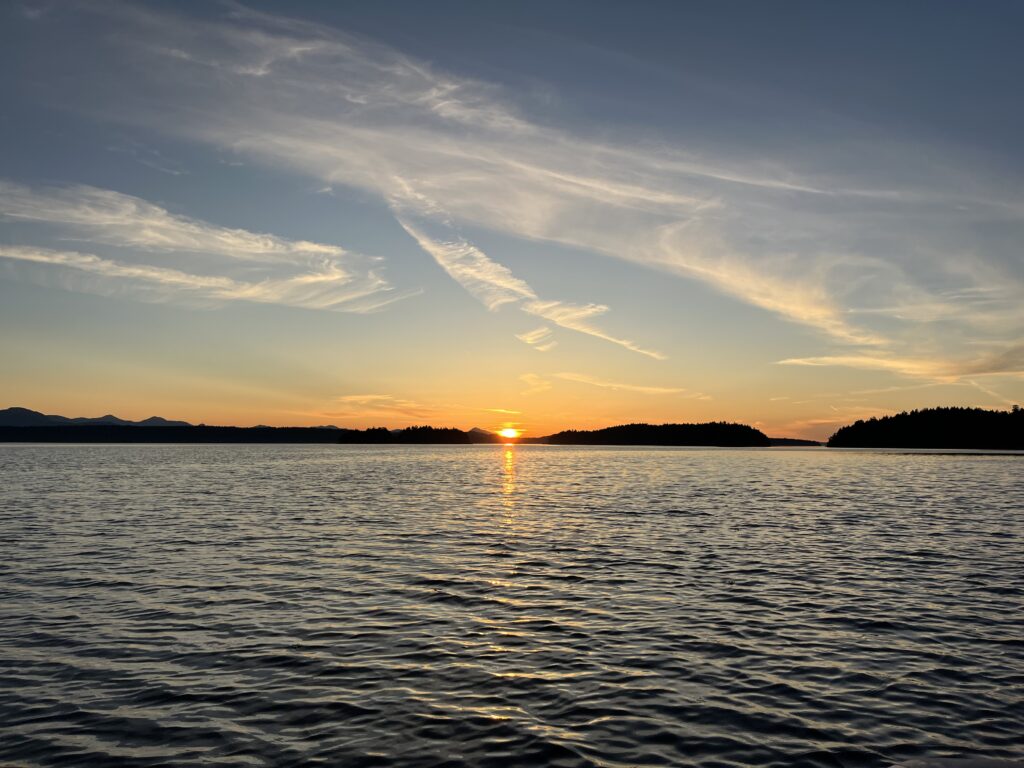 On the 2nd day at Wallace Island, an early evening wind storm from the south hit Spirit Bear broadside causing the anchor to drag. After a few unsuccessful attempts to reset, and itching for more adventure it was decided to head to Thetis Island for the evening. With long days of sun, the journey was quick & easy with a strong south-west breeze blowing. A quick radio call to the Telegraph Harbour Marina, and a slip was arranged.