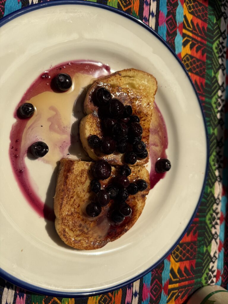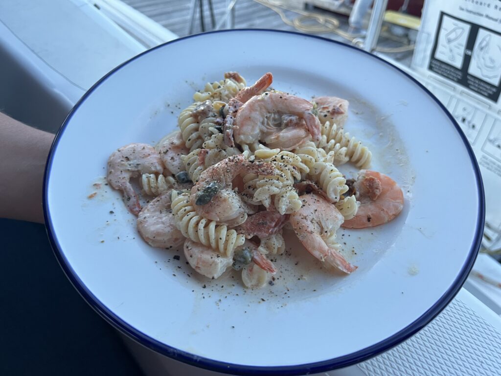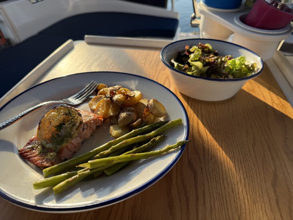 On-board menu changed daily: Fresh pizza lunch & french toast w/blueberries for breakie…